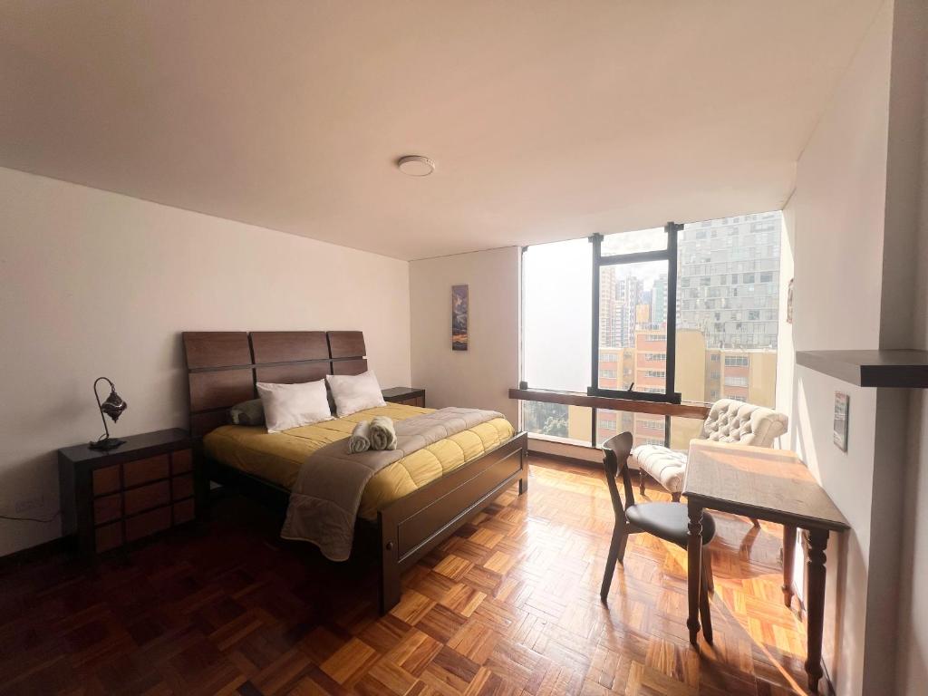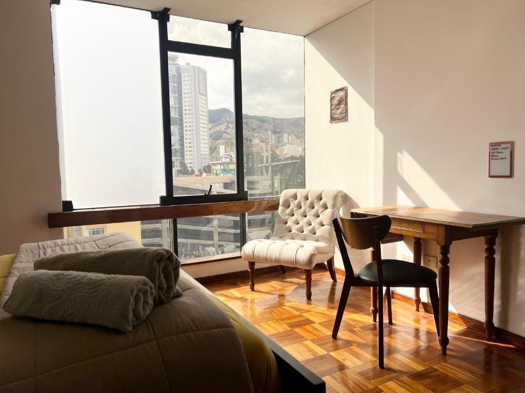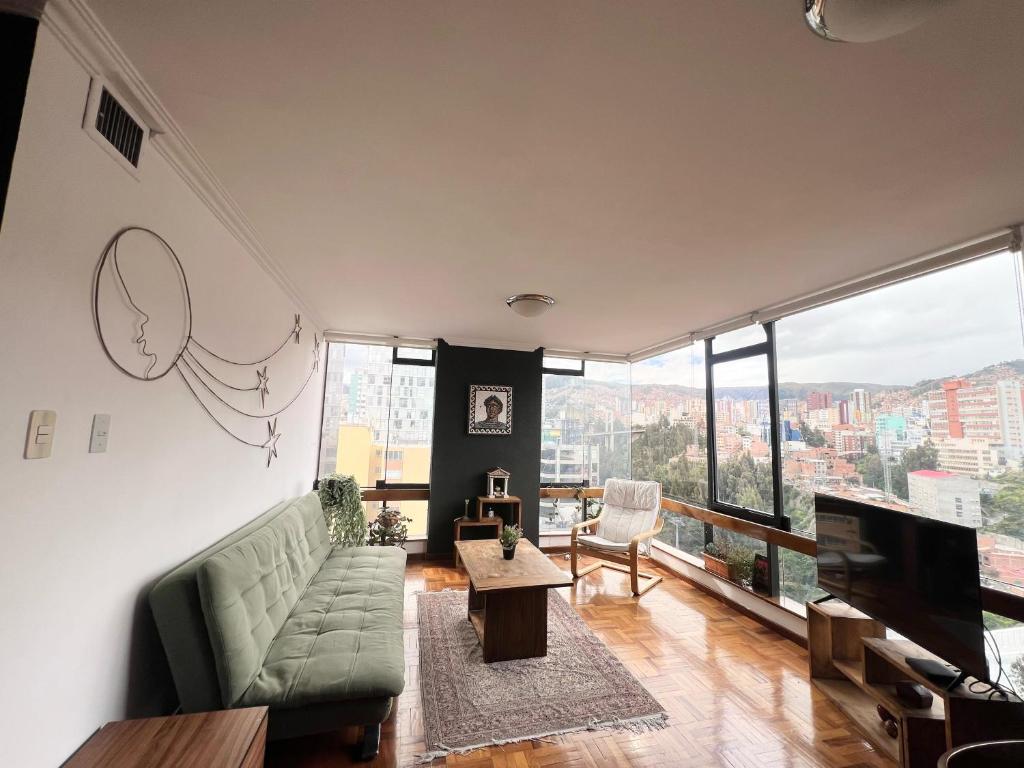 Soleado y completo departamento con vista Sopocachi ofrece traslados al aeropuerto por un costo extra.